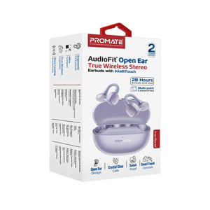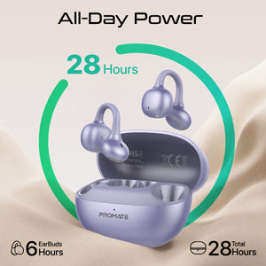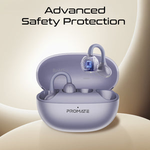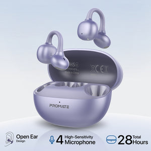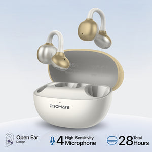 Promate AirClip-Pro Open-Ear True Wireless Earbuds, Clip-On OWS Design with 12mm Drivers, Bluetooth 6.0 Multipoint, IntelliTouch Tap Controls, Clear Mic, 28H Battery, IPX4 Sweat Resistant, Safe Charging Case