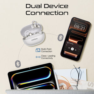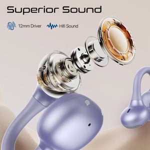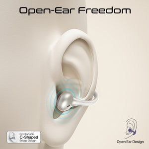 Open-ear wireless earbuds designed for premium comfort and natural awareness. Enjoy rich, balanced sound without blocking your surroundings—perfect for work, workouts, and everyday mobility.
