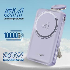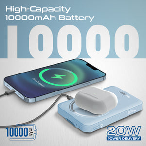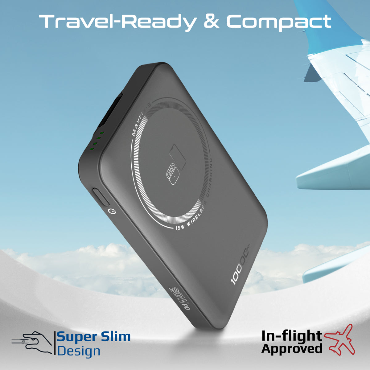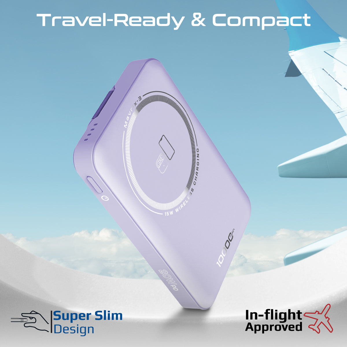 Power meets portability with the Mavrix-3, a next-generation 3-in-1 MagSafe-compatible power bank built for your mobile lifestyle. Designed with a powerful 10000mAh Li-Polymer battery in an ultra-slim, lightweight frame, this device ensures you never run out of charge on the go. It features seamless wireless charging for both your iPhone and Apple Watch, plus an additional USB-C Power Delivery port delivering up to 20W for fast wired charging of other devices.