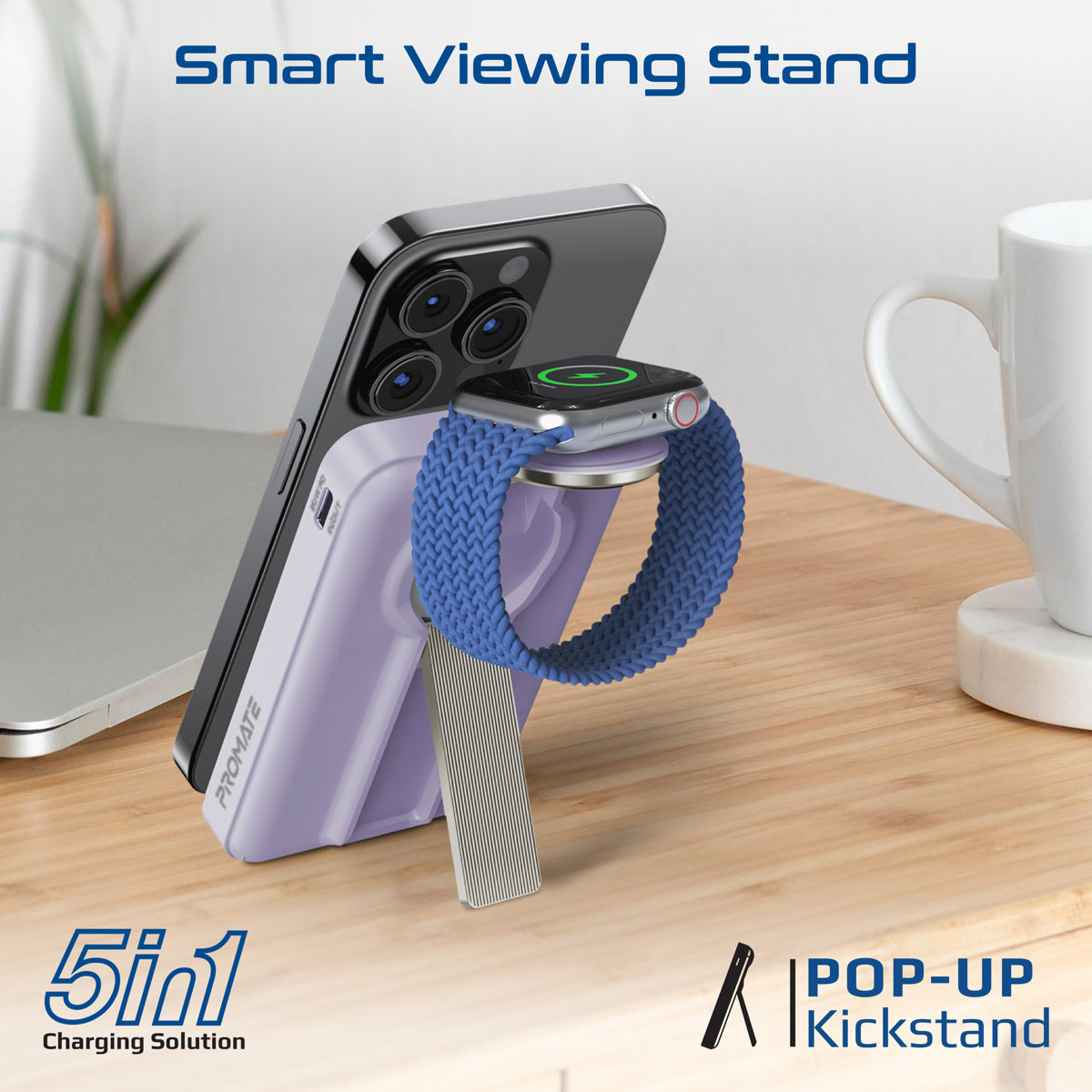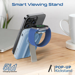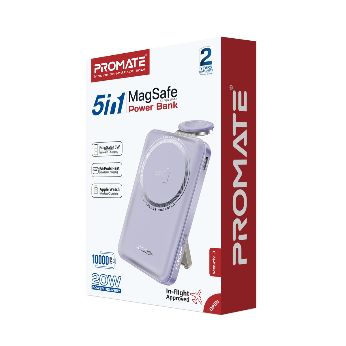 Mavrix-3 10000mAh MagSafe Wireless Power Bank with Apple Watch Charger, 15W MagSafe, 20W USB-C PD, Kickstand & Strong N52 Magnets – Ultra-Compact Travel-Safe Charging Station