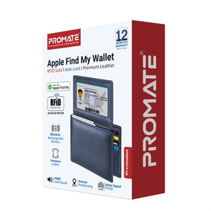 ProWallet Smart Leather Wallet with RFID Blocking, Apple Find My Tracker, Wireless Charging, Anti-Loss Bluetooth 5.2, SIM & MicroSD Slots, Slim Design, 6-Month Battery